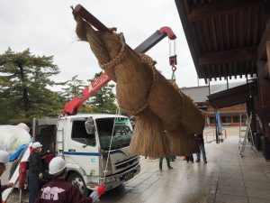 今年は出雲注連縄保存会の方から声をかけて頂き注連縄交換に立ち合わせて頂きました。交換の時期は毎年では無く神様が教えてくれるとお話されていました。全国の出雲大社に関係ある注連縄は、こちらの方々が奉納されているそうです。ちなみに当社の神棚の注連縄も作って頂きました。