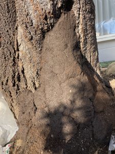 根周りと幹の一部にベッコウタケが上がってきてしまっているので