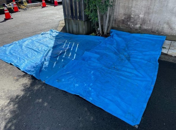 剪定した枝を集めて、一気に作業車に積み込みやすくするためと、枝や葉によって地面を汚さないようにするためです。