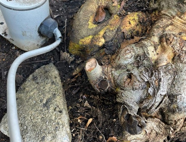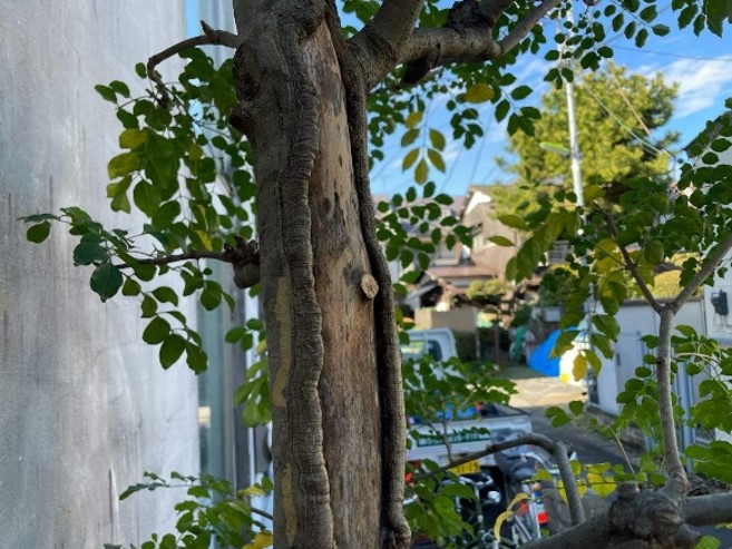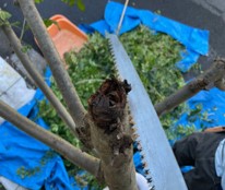 剪定する作業前、樹木幹が傷んでいる部分を発見しました。